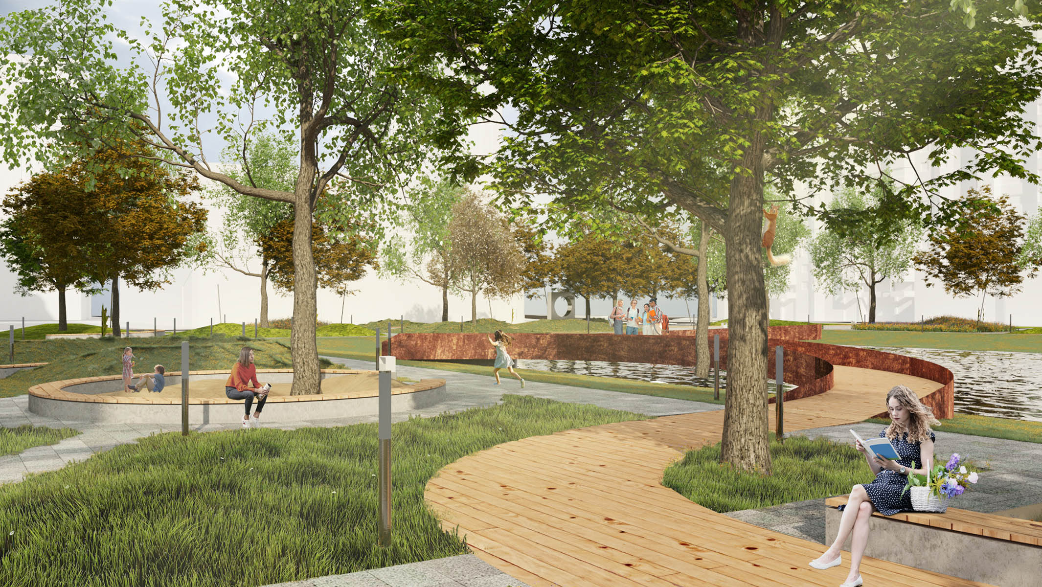 The design of the area around metro stations addresses the need for a convenient, pleasing environment for all types of users, including visitors, metro commuters, and residents of adjacent territories. The core idea behind the projects Changarski Bulvar is the separation of the main transit pedestrian zones and bicycle routes from secondary walking paths that perform different tasks depending on the of nearby programs or buildings. The proximity to the metro has its indirect effect, activating public areas, enabling social interactions, making the territory lively and important. In the areas with densely placed residential buildings, projects provide additional park areas, benches, playgrounds, and other programs suitable for the local users. Furthermore, the areas will be equally friendly and attractive for all age groups, from children to teenagers to the elderly, thanks to the various programs throughout the territory. As a result, this entire zone, in addition to supporting and regulating pedestrian traffic, can function as an urban park.