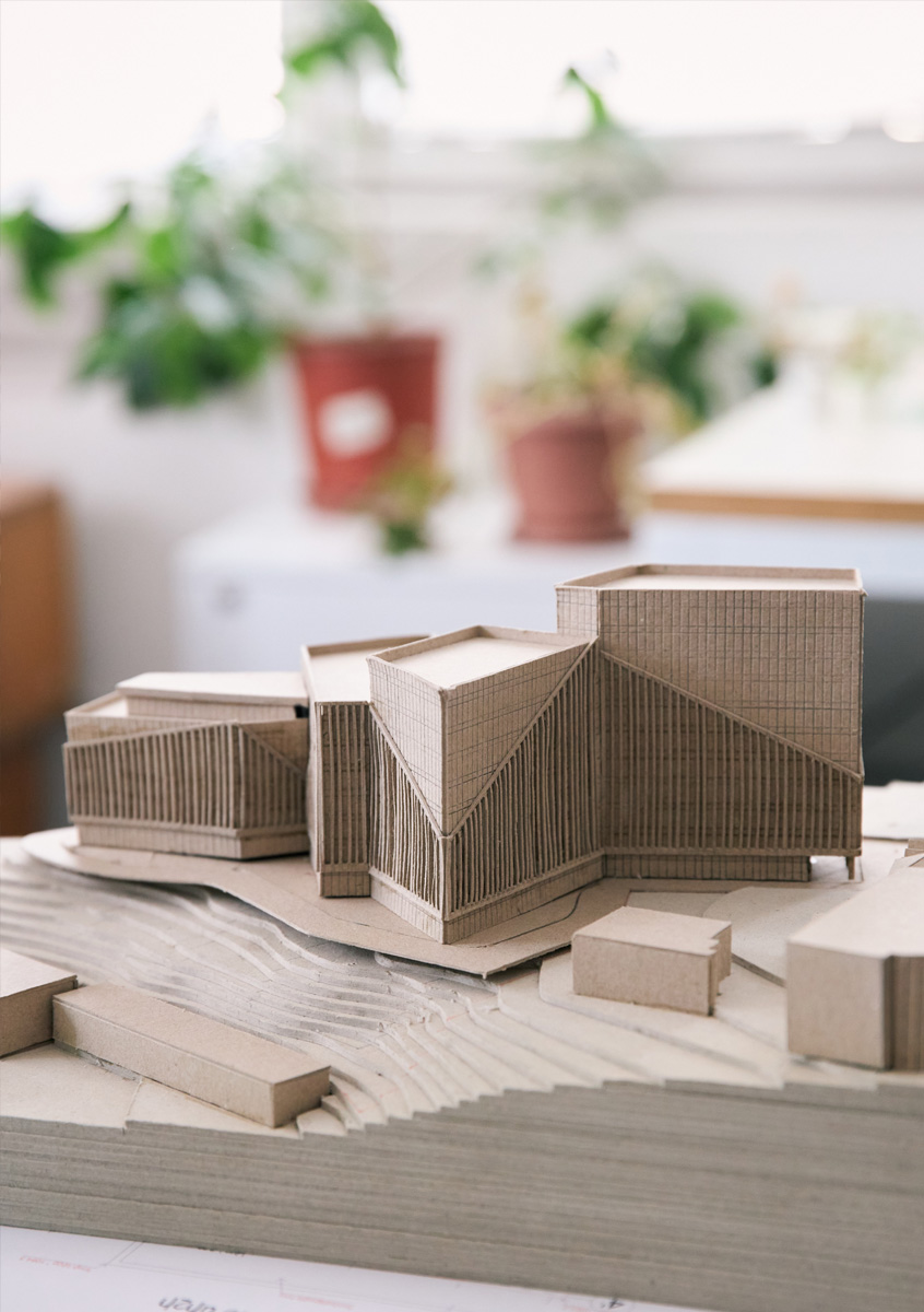 The multifunctional complex is located in a winter resort city of Tsaghkadzor, Armenia, covering 4,000 sqm. It sits on the edge of a small hill as one approaches the city, surrounded by a valley with panoramic views to the east, and hills and mountains on the other sides, where the main ski resort is located. The site has a significant elevation difference, and the only suitable area for construction was the flat top part of the terrain, which makes up about 40 percent of the total area.